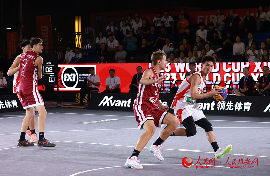 人民網(wǎng)雄安9月21日電 (李兆民、席彪)以“齊聚未來之城,共繪世界籃圖”為主題的2025國際籃聯(lián)三人籃球U23世界杯正在雄安體育中心南廣場“火熱”進行。截至9月20日晚,男子組、女子組8強全部產(chǎn)生,其中中國男隊將在四分之一決賽對陣捷克隊,中國女隊將在四分之一決賽對戰(zhàn)法國隊。 男子組中國隊與拉脫維亞隊比賽現(xiàn)場。