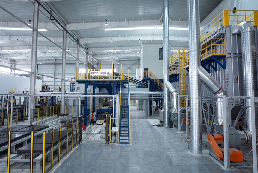 人民網雄安7月4日電 (記者劉師豪)近日,榮烏高速新線智能建造中心(以下簡稱“中心”)小型預制構件生產線開啟試運行。該生產線引入“燈塔工廠”模式,全力打造國內數字化、自動化、清潔化、柔性化、多樣化的區域性智能建造中心,為混凝土預制構件產業綠色高質量發展提供全新路徑。 榮烏高速新線智能建造中心小型預制構件生產線現場。