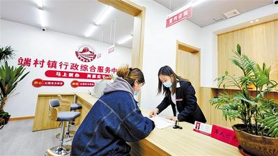 近日,安新縣端村鎮(zhèn)行政綜合服務(wù)中心內(nèi),一名工作人員在給前來辦理事項(xiàng)的群眾講解需要的相關(guān)手續(xù)。河北日報…