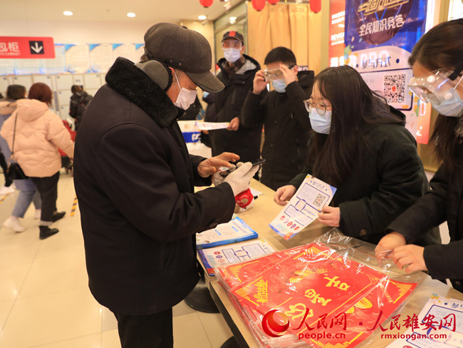 記者在現(xiàn)場看到,新區(qū)應(yīng)急管理局黨員志愿者向群眾發(fā)放疫情防控及家庭安全宣傳單,講解防疫及安全常識,鼓勵群眾參與互動答題贏取春聯(lián)、福字套裝和口罩等紀念品等方式,向群眾宣傳、普及安全知識。