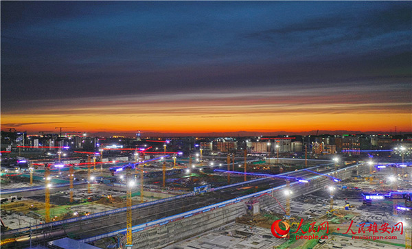 傍晚時分,雄安新區(qū)容東片區(qū)燈火通明。劉向陽/攝