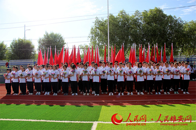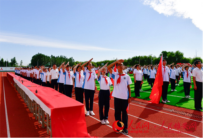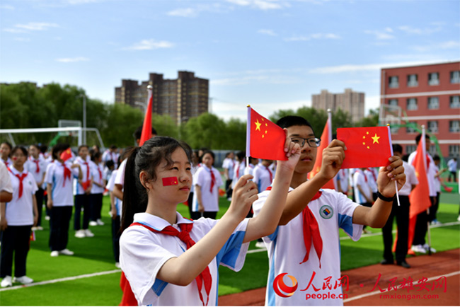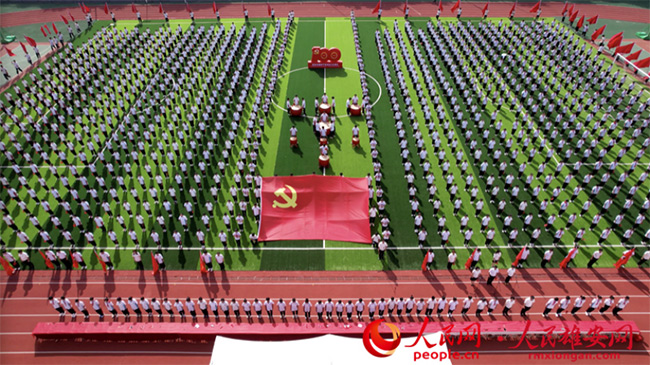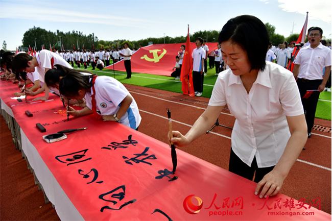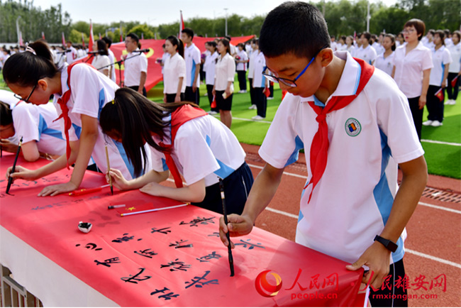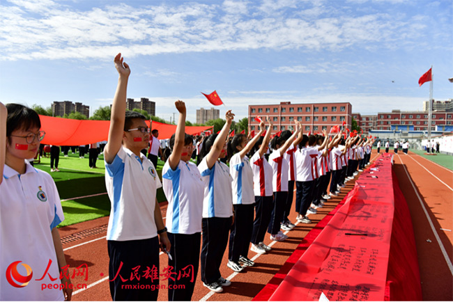 人民網(wǎng)雄安6月23日電 (劉師豪)“美哉我少年中國(guó),與天不老;壯哉我中國(guó)少年,與國(guó)無(wú)疆!”日前,北京市第八十中學(xué)雄安校區(qū)的運(yùn)動(dòng)場(chǎng)上,紅旗招展,1000余名師生肅穆而立,用嘹亮的聲音誦讀經(jīng)典,用工整的字體寫下對(duì)黨的祝福與熱愛(ài)。