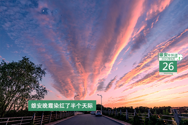 今天是2021年6月26日,星期六,天氣晴,18℃~32℃。在封面和大家見面的是雄安晚霞。