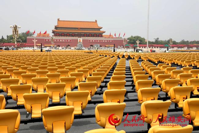 天安門廣場上的觀禮座椅。河北帥康座椅公司供圖