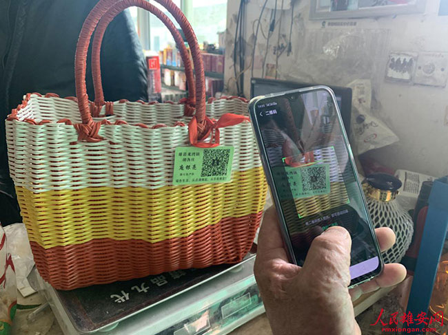圖為村民正在使用提籃掃碼購物。張婭喃攝