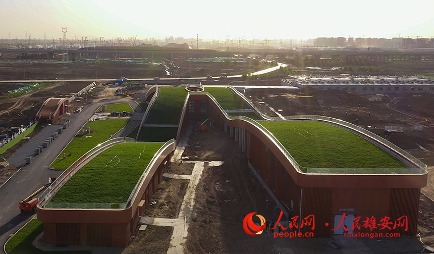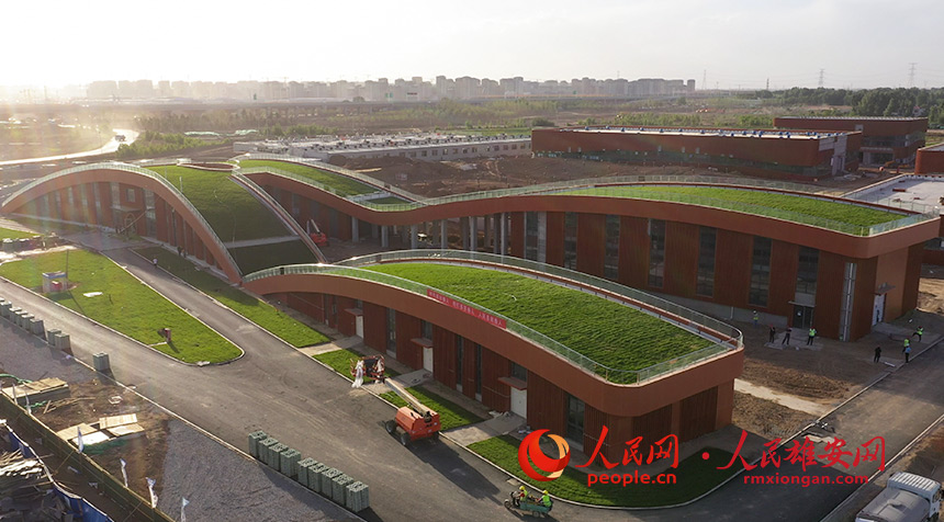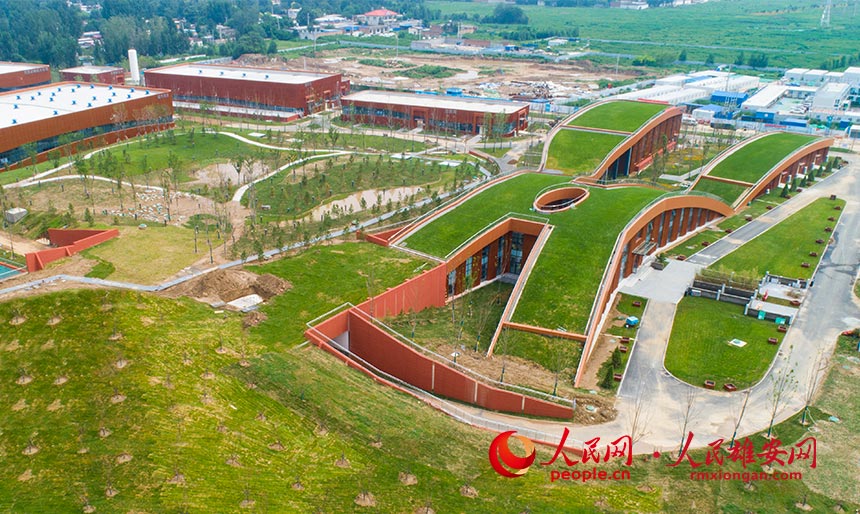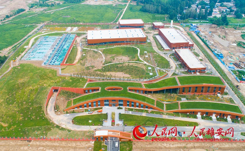 雄安新區起步區1#供水廠綜合樓采用頂部覆土形式將水廠與周邊環境融為一體。人民雄安網 宋燁文攝