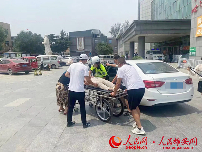 圖為民警幫忙將患者護(hù)送到醫(yī)院。容城縣公安局供圖