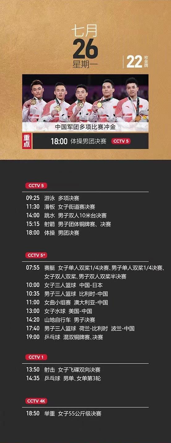 4.今日18:00將迎來體操男團決賽。具體賽事推薦如下: