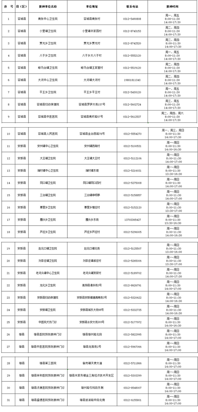 5.雄安新區(qū)發(fā)布新冠疫苗最新接種單位公示,三縣共有31個接種點。