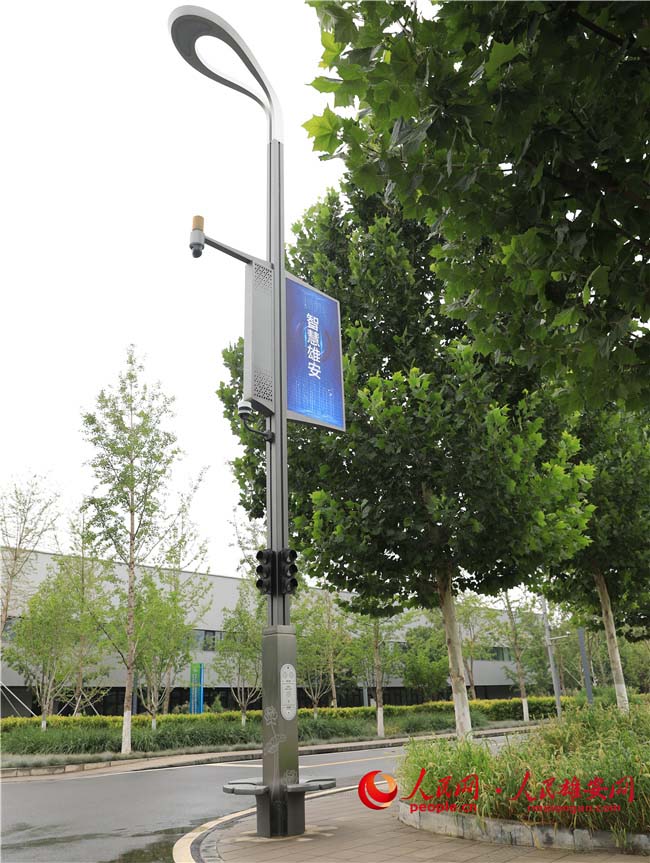 圖為依據《雄安新區多功能信息桿柱建設導則》打造的智能復合桿柱。實習生 李康樂攝