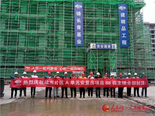 人民網雄安8月2日電 雄安新區雄東片區A單元安置房項目88棟住宅樓主體結構日前全部封頂,車庫結構完成100%,精裝樣板間一次性驗收通過,進入二次結構和各專業穿插施工階段。