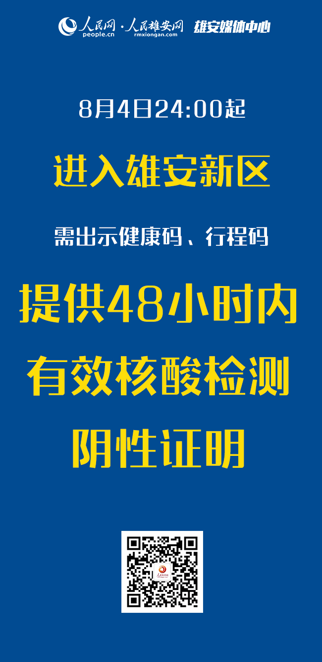 如進入雄安新區,需出示健康碼、行程碼,配合工作人員進行測溫,并提供48小時內有效核酸檢測陰性證明。