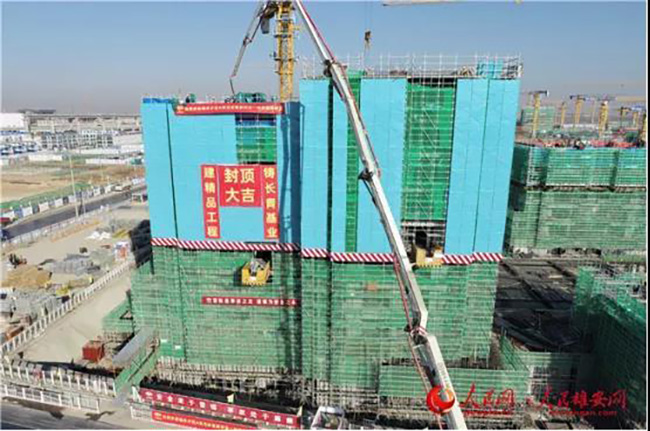雄東片區A單元安置房項目88棟住宅樓主體結構封頂