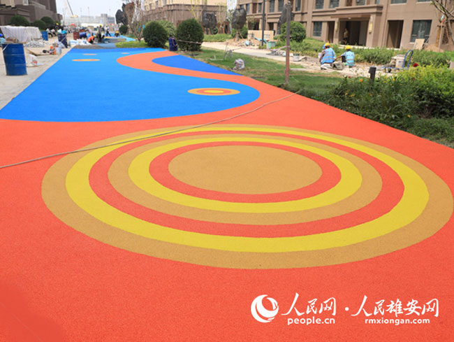 圖為雄安容東片區B1組團小市政工程項目建設現場即將鋪筑完成的塑膠路面。李康樂攝