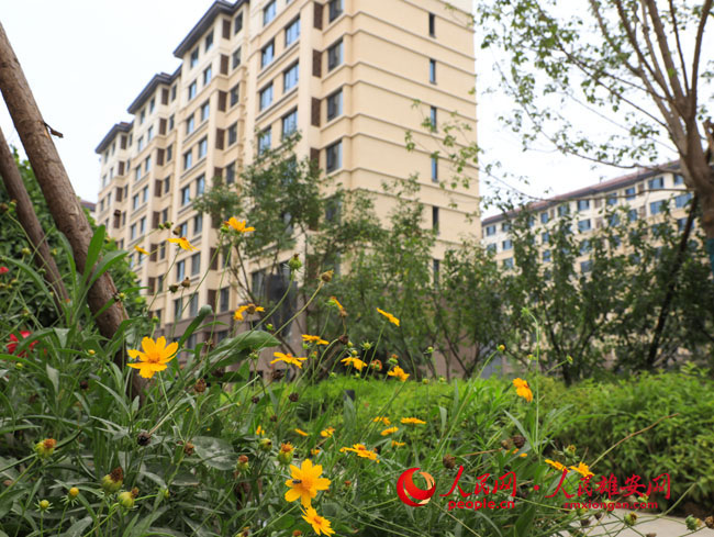 圖為雄安容東片區B1組團安置房與綠植相互映襯。李康樂攝