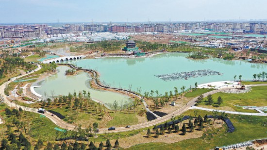近日,河北雄安新區(qū)金湖公園中央湖區(qū)標(biāo)段建設(shè)現(xiàn)場一片繁忙,湖面中心的噴泉設(shè)備正在進(jìn)行試噴,工人們正在花壇整修花草……作為雄安新區(qū)容東片區(qū)內(nèi)生態(tài)與文化兼容的“城市綠色客廳”,金湖公園建設(shè)進(jìn)展順利,已經(jīng)露出俊模樣。