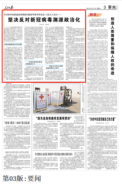 近期,70多個國家通過致函世衛組織總干事、發表聲明或照會等方式,支持中國—世衛組織溯源聯合研究報告,反對溯源問題政治化。30多個國家對世衛組織第二階段溯源工作計劃提出反對或保留意見。還有許多國家的政黨、團體、專家學者和媒體以不同方式表達了反對政治溯源、堅持科學溯源的立場。