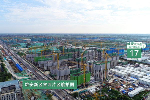今天是2021年8月17日,星期二,天氣多云,22℃~29℃。在封面和大家見面的是雄安容西片區航拍圖。
