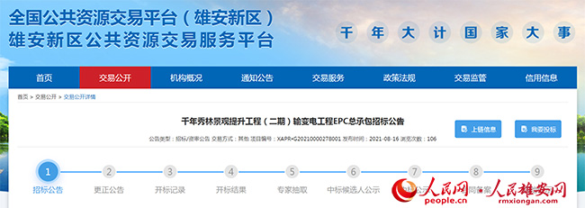 人民網(wǎng)雄安8月17日電 (張佳藝)雄安新區(qū)公共資源交易服務(wù)平臺(tái)發(fā)布的《千年秀林景觀提升工程(二期)輸變電工程EPC總承包招標(biāo)公告》顯示,千年秀林景觀提升工程(二期)項(xiàng)目計(jì)劃9月20日開工,11月21日竣工。項(xiàng)目總投資約超6.7億元。