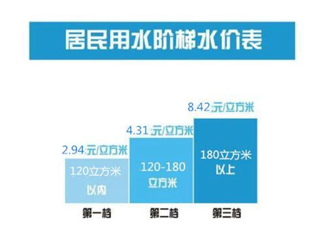 4、居民階梯水價第一、二、三級水量基數(shù)分別為120立方米/年、120-180立方米/年和180立方米/年以上,戶內(nèi)用水人數(shù)超過4人的,每增加1人年提高30立方米水量。