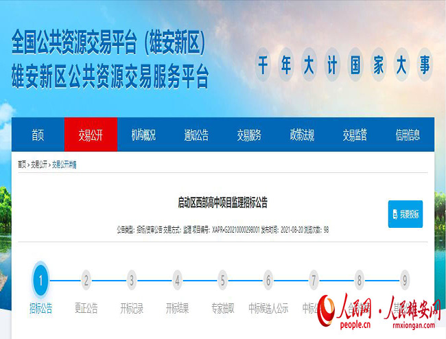 公告顯示,本次招標采用綜合評估法,開標形式為遠程開標。有意者可于26日17:30前通過“雄安新區招標投標交易平臺”(網址:http://www.xaprtc.com/xapr/trading)下載招標文件。投標文件遞交的截止時間為9月15日9:30。