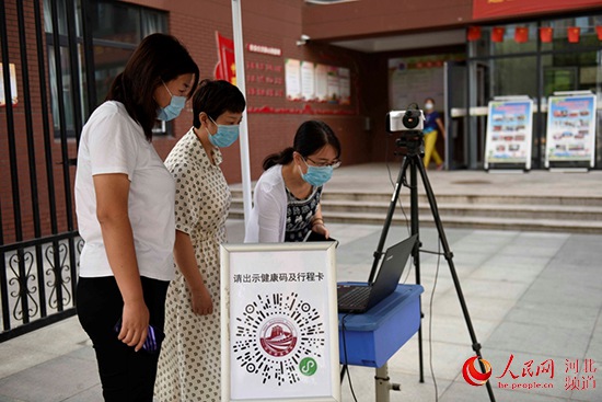 石家莊市智匯小學在測試學校門口體溫檢測設備。 人民網 祝龍超攝