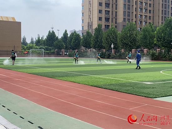 8月21日,石家莊市智匯小學邀請藍天救援隊對學校全面消殺。 學校供圖