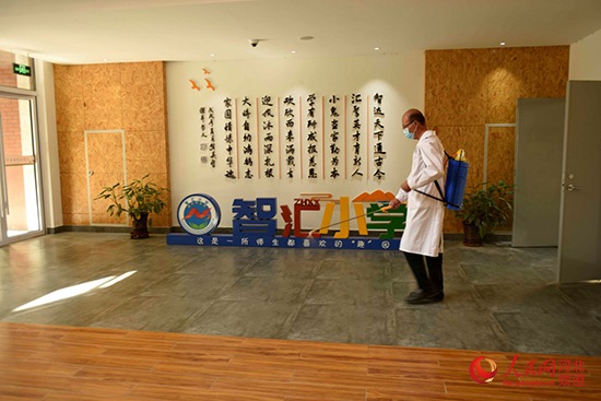 石家莊市智匯小學對學校進行全面消殺。 人民網 祝龍超攝