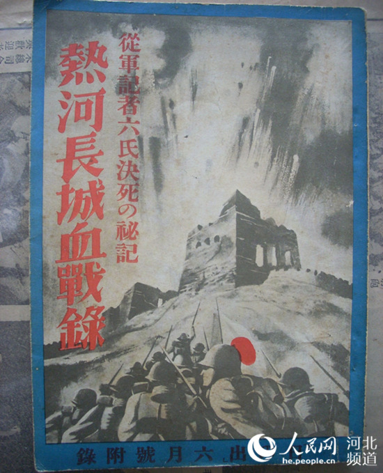 一份展品是1934年日本出版的《熱河長城血戰(zhàn)錄》,這是當(dāng)時(shí)日本隨軍記者對長城抗戰(zhàn)真實(shí)的紀(jì)錄。這部書中對中國軍隊(duì)的英勇抵抗,以及日軍的損失進(jìn)行了比較真實(shí)的描寫,特別是其中日軍慘斗古北口、血戰(zhàn)喜峰口等戰(zhàn)斗描述。