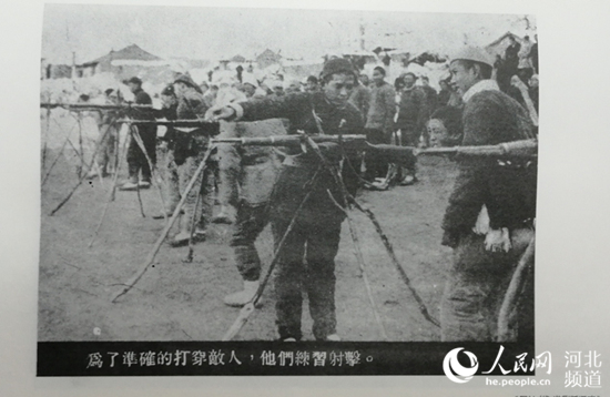 為了準(zhǔn)確地打穿敵人,他們練習(xí)射擊。 《人民戰(zhàn)爭——晉察冀畫報(bào)叢刊》插圖翻拍