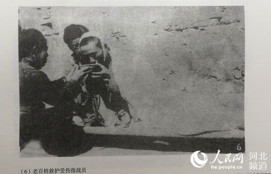 老百姓救護(hù)受傷指戰(zhàn)員。 《人民戰(zhàn)爭——晉察冀畫報(bào)叢刊》插圖翻拍