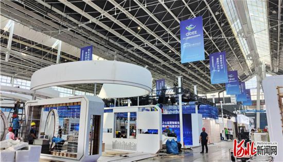 9月2日,石家莊國際會展中心8號展館內,各展位正在緊張布展。 河北日報記者趙海江攝