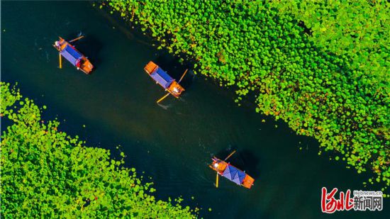 乘船徜徉白洋淀,秀美風光令人目不暇接。