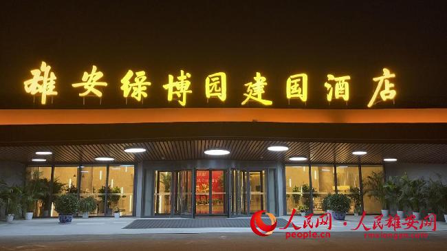 雄安綠博園建國(guó)酒店正門夜景。雄安集團(tuán)生態(tài)公司供圖