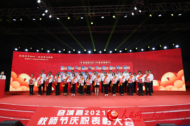 容城縣2021年教師節慶祝表彰大會現場。夏敬雪攝