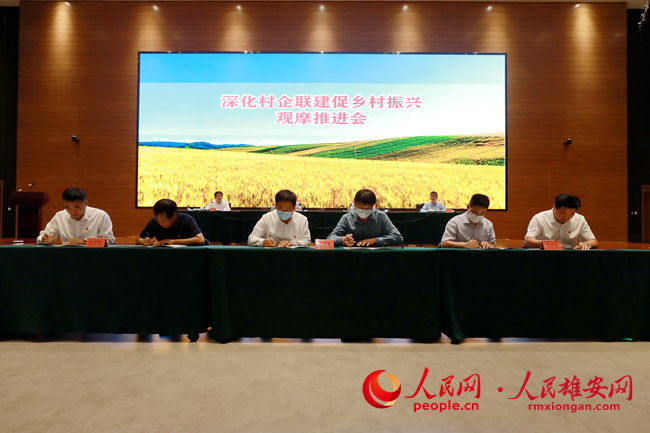 雄安新區(qū)深化村企聯(lián)建促鄉(xiāng)村振興工作推進(jìn)會(huì)現(xiàn)場(chǎng)。人民網(wǎng) 劉師豪攝