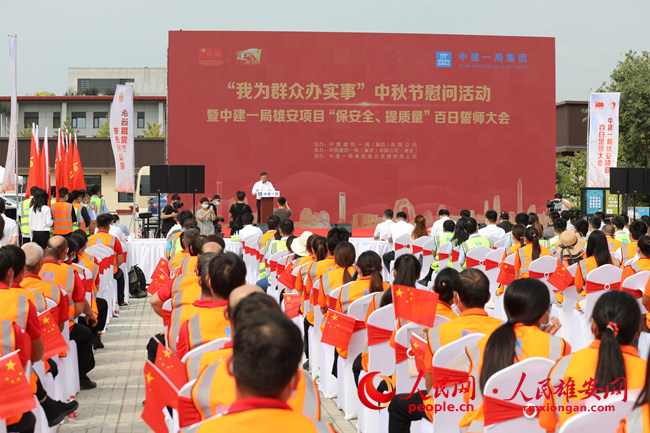 人民網雄安9月16日電 (劉師豪)“我為群眾辦實事”中秋節慰問活動暨中建一局雄安項目“保安全、提質量”百日誓師大會15日舉行。當天,中華全國總工會文工團的演員們,為雄安建設者奉上了精彩的“文化大餐”。
