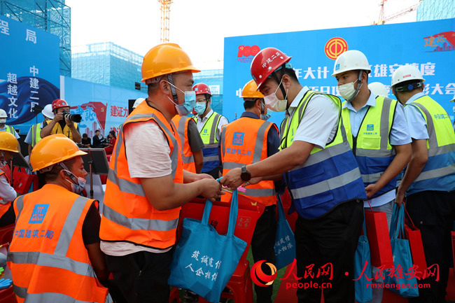 此次活動還表彰了在雄安·金湖未來城項目第三、四標段“大干100天、攻堅保目標”勞動競賽活動中涌現出的優秀勞務隊伍,并為建設者們準備了節日慰問品。