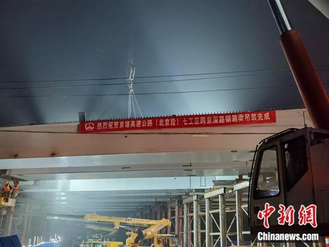 9月29日凌晨2點08分,經(jīng)過連續(xù)25天的晝夜奮戰(zhàn),京雄高速北京段七工區(qū)施工的京深路立交橋上跨107國道鋼混組合梁最后一片鋼箱梁吊裝節(jié)段緩緩就位,順利完成鋼梁合攏,較原計劃提前2天完成鋼梁吊裝,為后續(xù)橋面施工創(chuàng)造了條件。