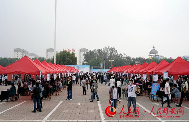 人民網雄安9月30日電 (劉師豪)2021年河北雄安新區“金秋招聘月”大型人力資源招聘會首場活動今日在雄縣塑料包裝城廣場舉辦。此次招聘會采取“線上+線下”融合并行的方式,共組織2454家單位、提供44108個就業崗位。截至30日14時,線下初步達成就業意向1126人,線上初步達成就業意向15883人。