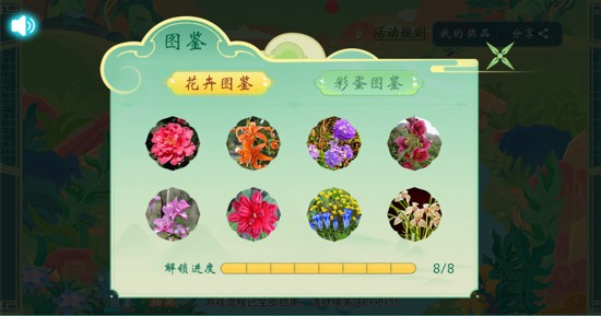除了獎(jiǎng)項(xiàng)之外,該產(chǎn)品也不乏知識(shí)性——產(chǎn)品以山茶、玉蘭、百合、杜鵑花、報(bào)春、蘭花、綠絨蒿、龍膽系等云南八大名花為主元素,每培育成功一種花,都會(huì)生成花的圖譜,圖譜上會(huì)有該種花的圖片及精練的文字介紹。八大名花全部種成功后,你將解鎖云南生物多樣性圖譜。