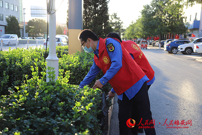 志愿者手持垃圾撿拾器在街頭撿拾垃圾。容城縣委宣傳部供圖
