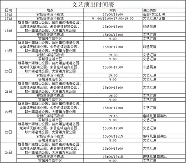 雄安新區2021金秋市民藝術周活動日程表。主辦方供圖