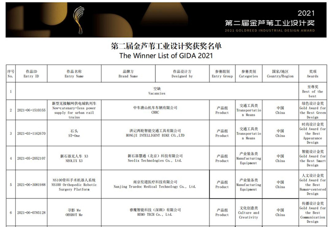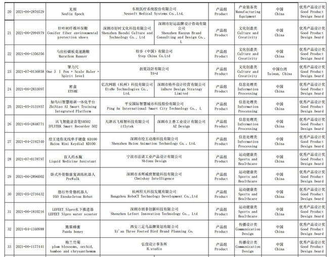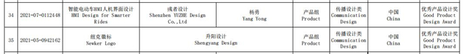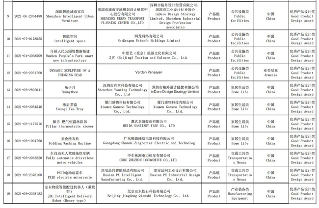 圖為優(yōu)秀產(chǎn)品設(shè)計(jì)獎(jiǎng)名單。