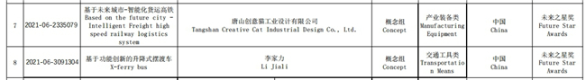 此外,“基于未來(lái)城市-智能化貨運(yùn)高鐵”、“基于功能創(chuàng)新的升降式擺渡車”獲未來(lái)之星獎(jiǎng),“深圳智能城市家具”、“烏鎮(zhèn)人民公園智慧新基建”等27項(xiàng)獲優(yōu)秀產(chǎn)品設(shè)計(jì)獎(jiǎng),“麥草貓”、“Translators聾啞人交流輔助智能眼鏡設(shè)備”等9項(xiàng)獲優(yōu)秀概念設(shè)計(jì)獎(jiǎng)。