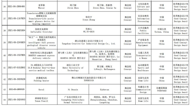 圖為優(yōu)秀概念設(shè)計(jì)獎(jiǎng)名單。