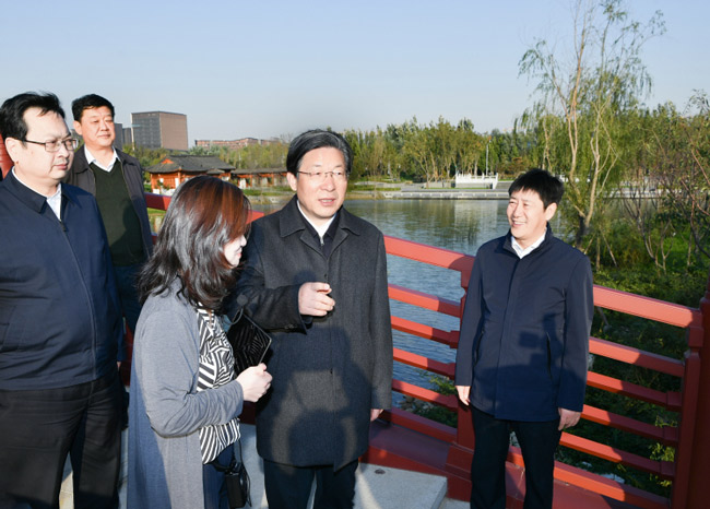 10月17日至18日,河北省委書記、省人大常委會主任王東峰在雄安新區(qū)調(diào)研檢查。這是王東峰在悅?cè)莨珗@南苑,實(shí)地察看公園建設(shè)進(jìn)展情況。河北日報(bào)記者趙威攝