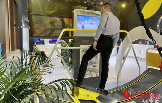 而位于衡水展區不遠處的定州展區內,一名男子正在體驗智能式滑雪機。真實的滑雪場景呈現,人體感官與肢體力量的全面協調配合,智能體感與人體平衡性的鍛煉,給人帶來一種沉浸式的滑雪體驗,讓體驗者連稱“過癮”。