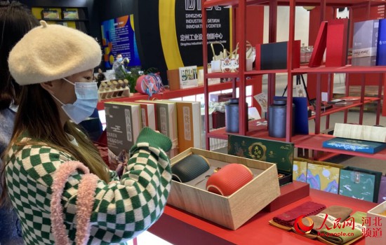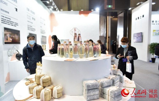 在邯鄲東方傳統色展區,兩面展架陳列的茶具、文創產品、果酒、白酒、茶盒、禮盒等憑借其精美的外觀吸引了大批參觀者的目光。