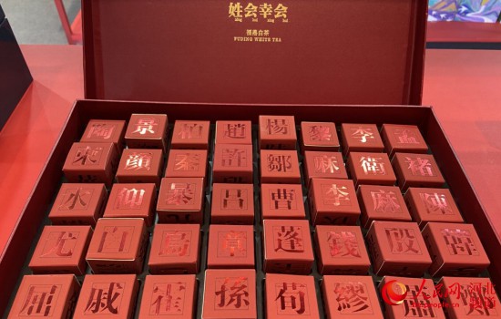 邯鄲展區的“姓會幸會”白茶禮盒。 人民網 付兆颯攝